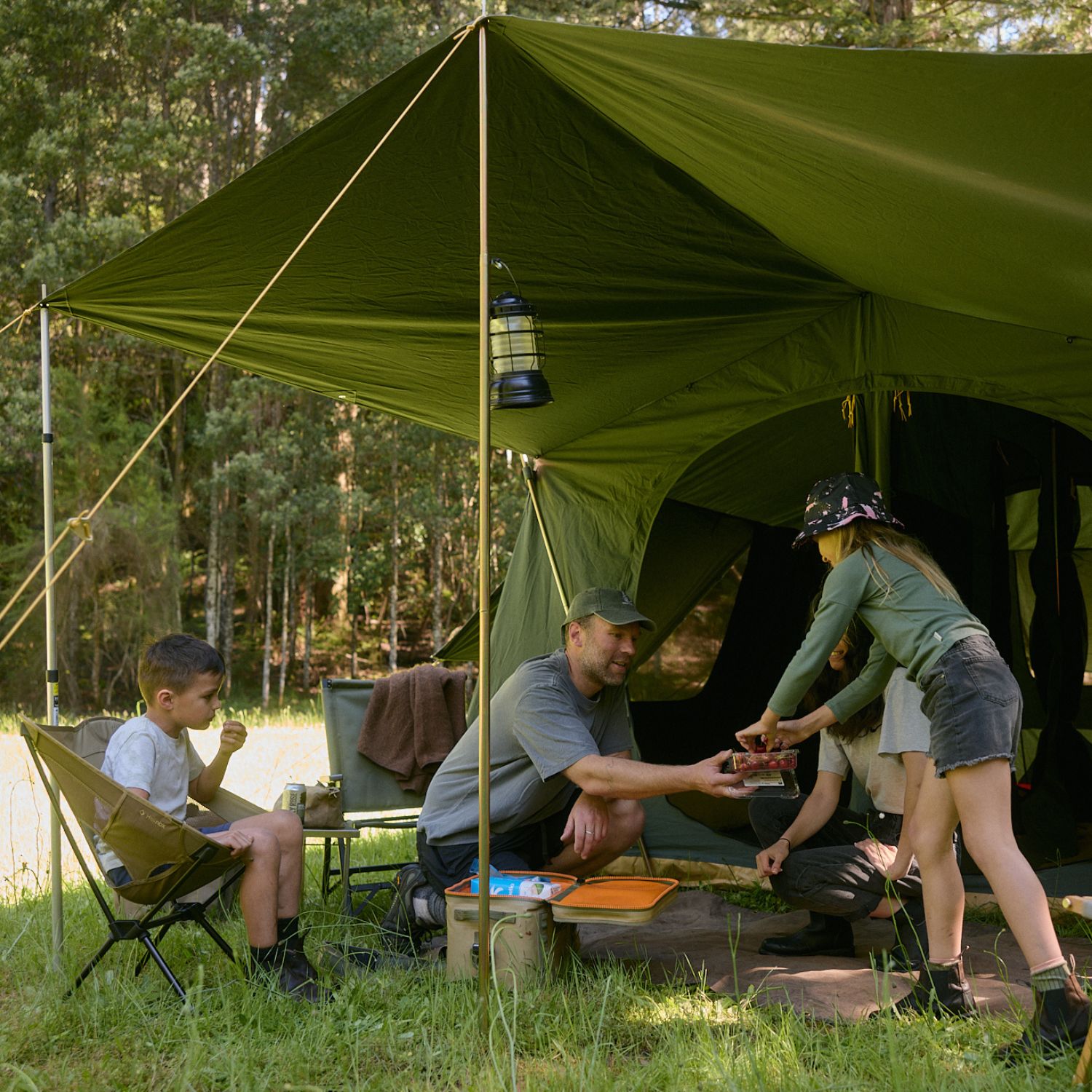You can also add the Mesh Annex (sold separately), which connects to the front awning to form a fully enclosed screen house. It has a zip-door entrance at the front and a second zip door straight into the tent itself, so you can move between spaces without letting the bugs in. The Mesh Annex gives you a bug-free outdoor room where you can cook, eat, play cards or just enjoy a cold drink without flies and mozzies. On hot, still evenings it’s the best seat in camp; when the weather turns, it adds sheltered space without having to hide yourself away inside.