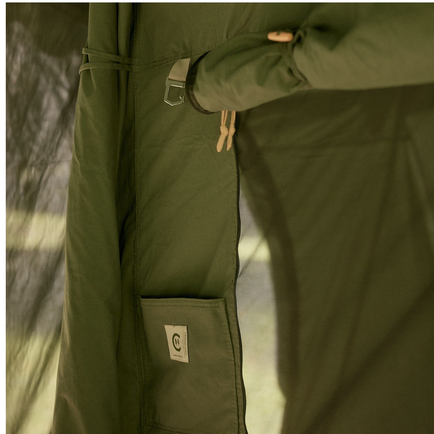 Full-height central zip door – with both mesh and canvas layers for airflow and privacy