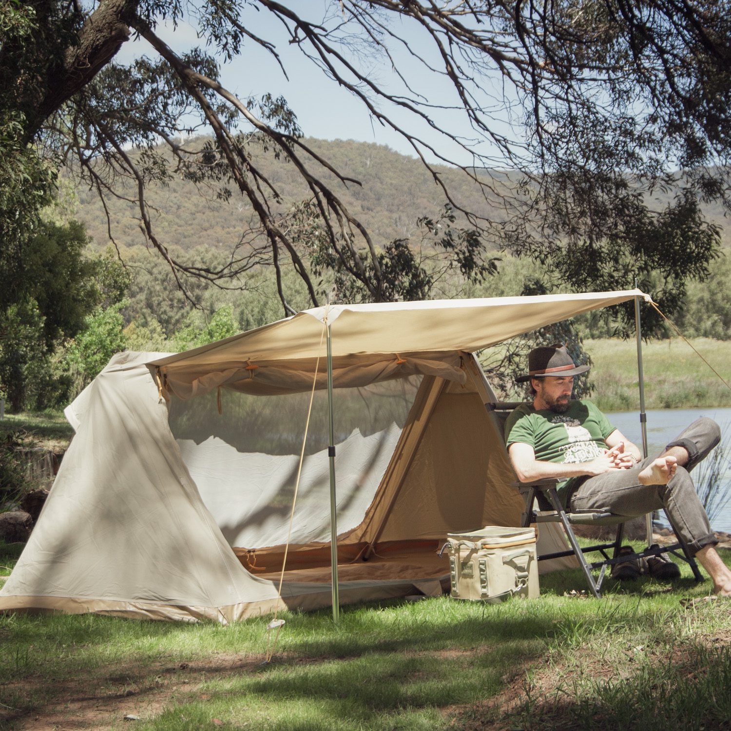Building on the success of our original Solo View Tent, the Twin View is a larger, versatile evolution – designed for those who want the simplicity of a swag, the openness of a tarp shelter, and the comfort of a full-sized tent. With extra height, added width, and dual awning doors, the Twin View offers a weatherproof home in the wild – ideal for two people plus gear, and designed to fit a double camping mattress with room to spare.