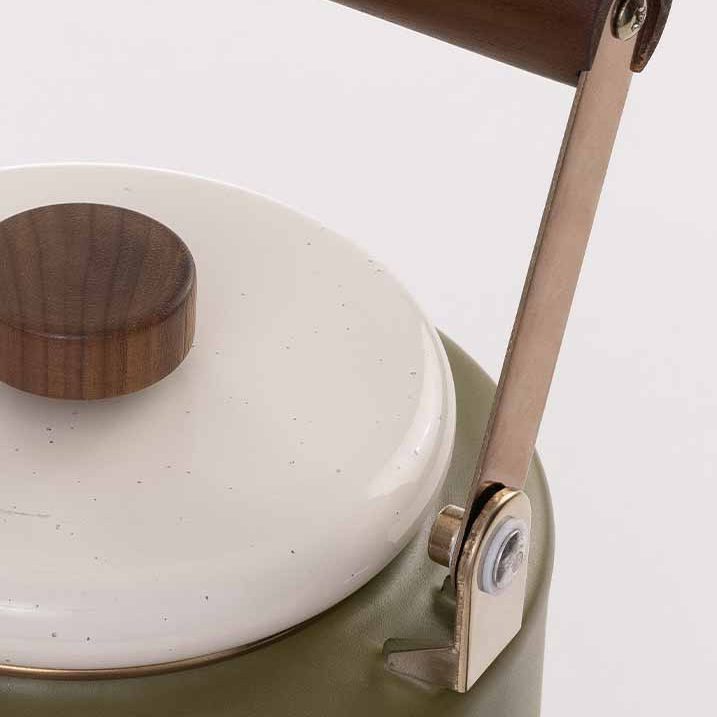 This enamel 2-tone kettle is inspired by Mid Century Modern design, the generous walnut handle along with the matching pull-top give this vessel a vintage charm. Whether your boiling water, steeping tea, warming a cocktail or simmering a broth this charming kettle with its naturally smooth walnut handle makes for an aesthetic and functional addition to your camping staples.