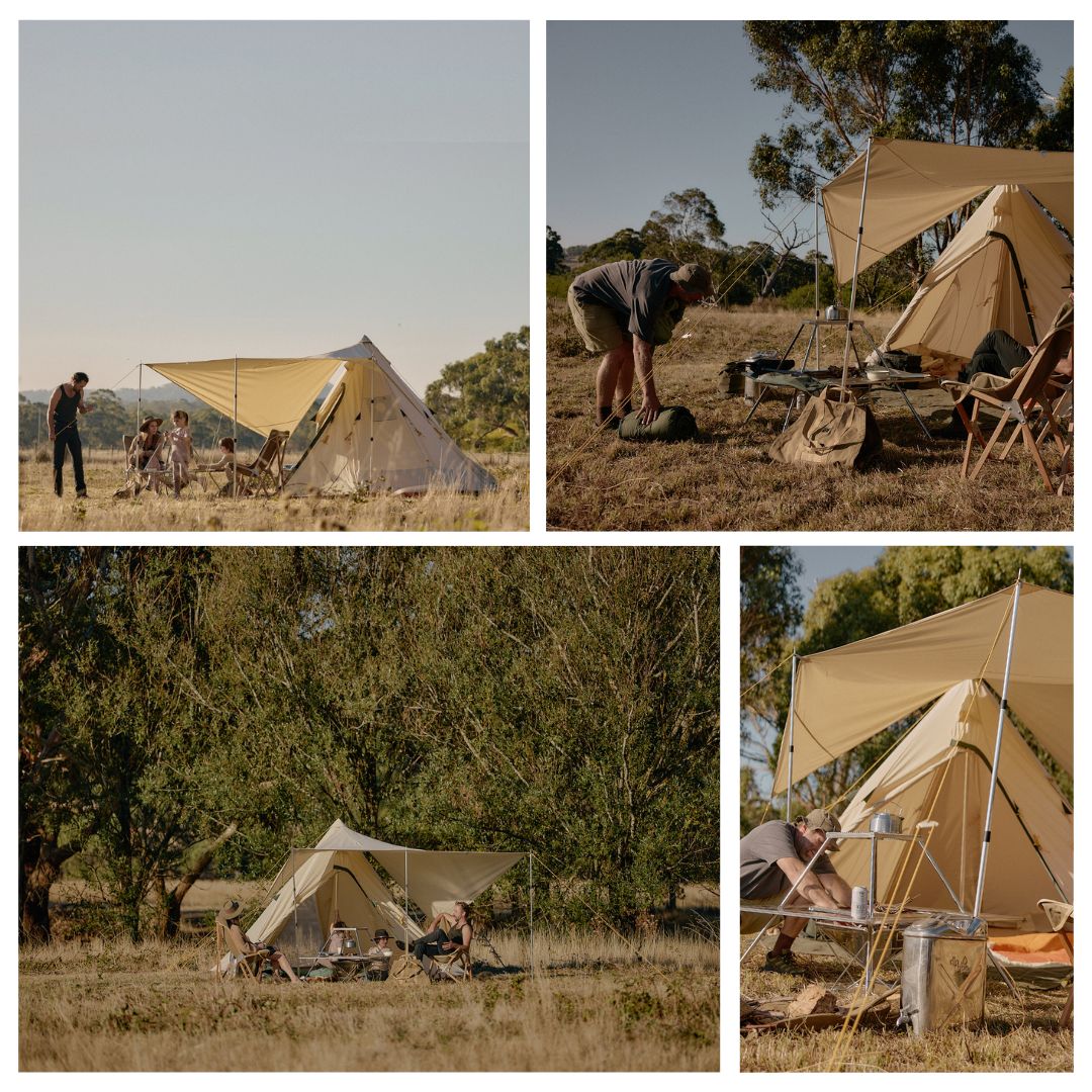 - Tipi Awning — The Tipi Wing Awning is a versatile extension that expands your Tipi’s footprint by 3 m, creating a generous sheltered space for cooking, relaxing or escaping the sun and rain. Made from the same heavy-duty canvas as the tent, it attaches seamlessly at the apex, is reinforced at all stress points, and offers multiple setup options with six stainless steel D-rings for poles and guy lines. Available in Forest Green or Desert Sand, it’s the perfect way to transform your Tipi into a true indoor–outdoor living space.